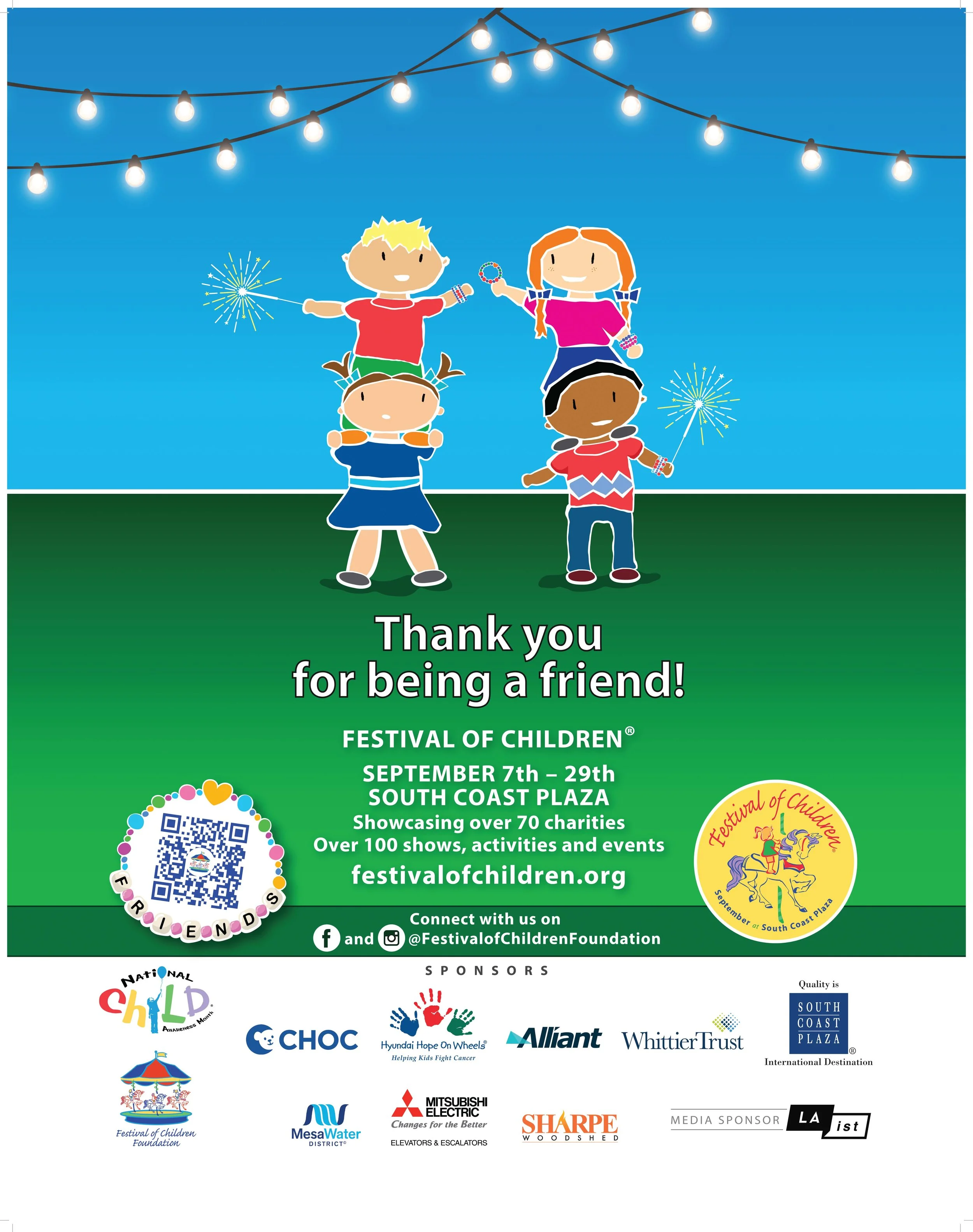 We’re thrilled to be returning to the 23rd Annual Festival of Children on September 7th as we celebrate National Child Awareness Month at South Coast Plaza. The event is completely free and offers face painting, arts & crafts, and so much more. Bob Baker Marionettes will be performing at 1:15 pm and 4 pm. See you there!