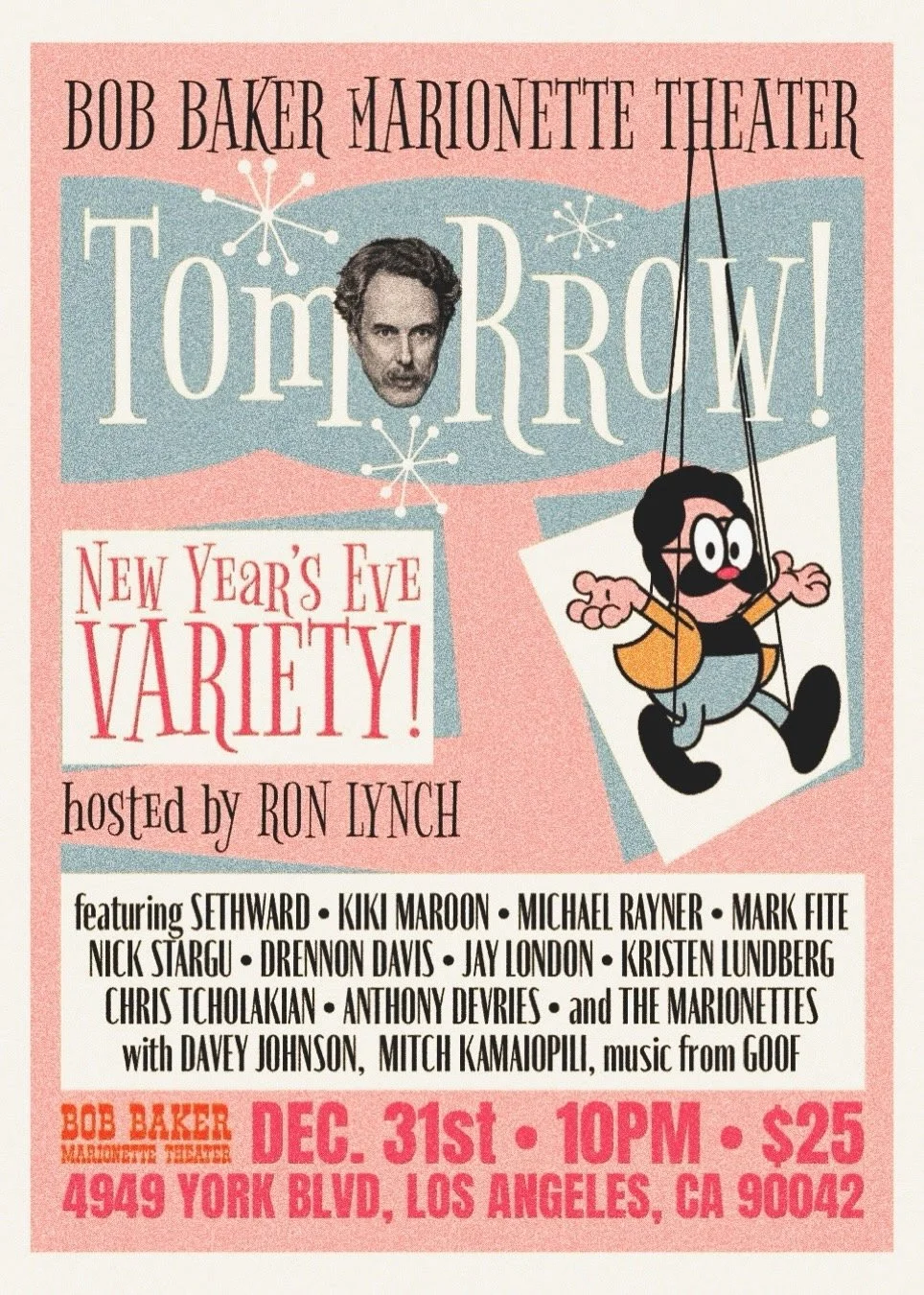 It's a "Tomorrow!" New Year’s Eve party hosted by Ron Lynch and featuring an all-star line up including: