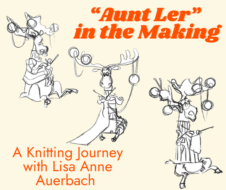 As part of the process, Lisa took her own train ride across the country to inspire her pattern. With the sweater done and fitted to Aunt Ler’s puppet proportions, Lisa is also working on a matching hat to keep Aunt Ler warm throughout the train ride.